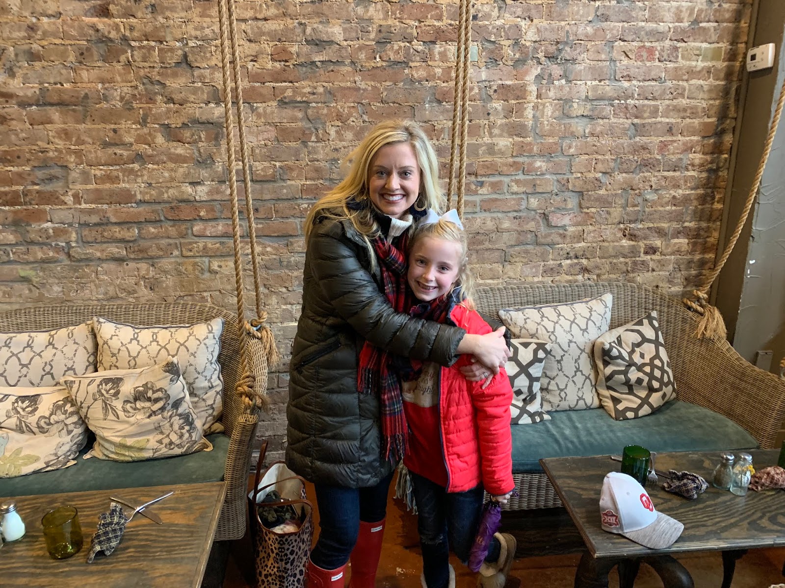 Then it was DINNER TIME! I made reservations back when I reserved Santa for a yummy {pre-parade} dinner at Harvest. Britt’s blurry because she was rocking. 🙂