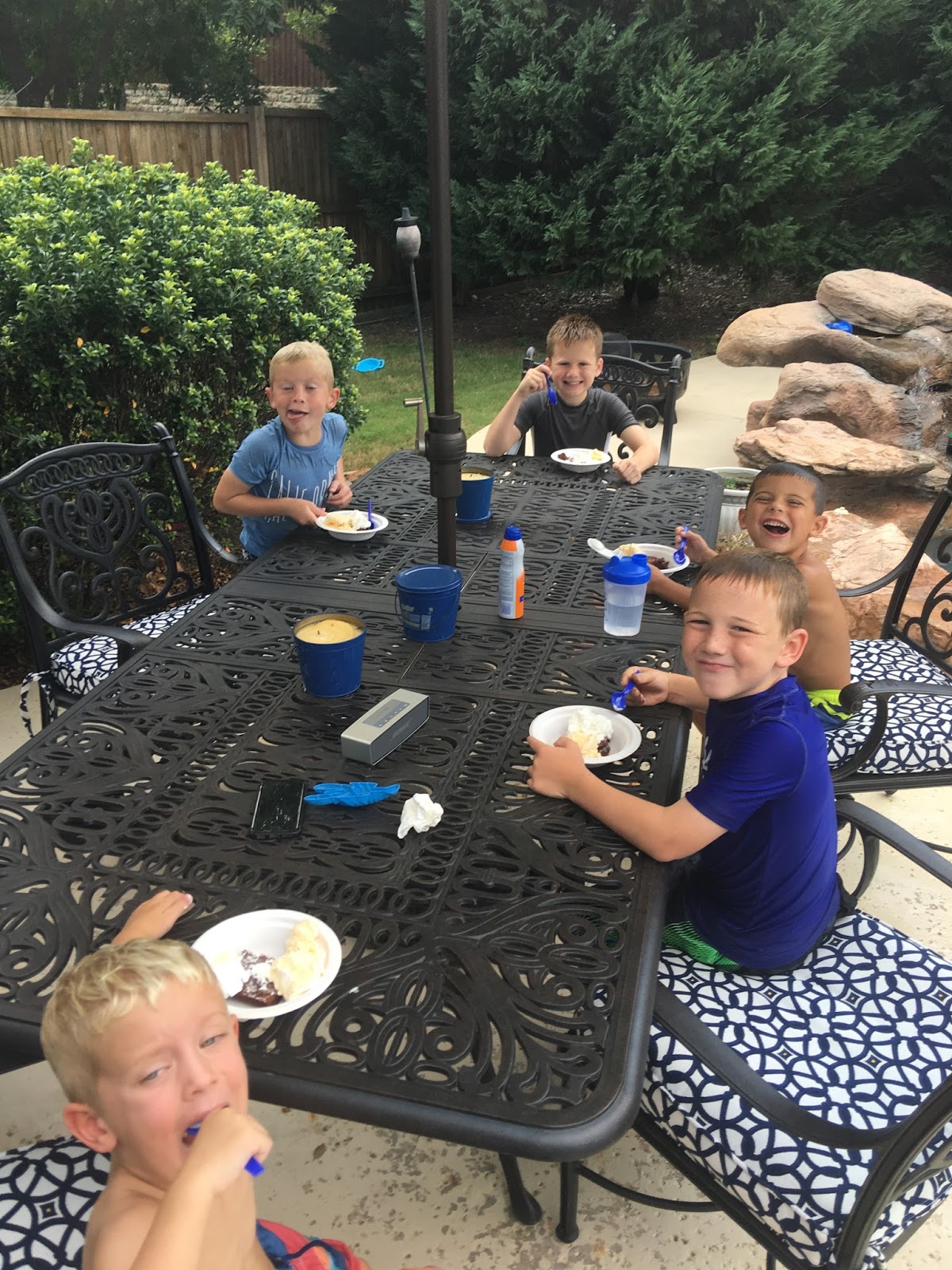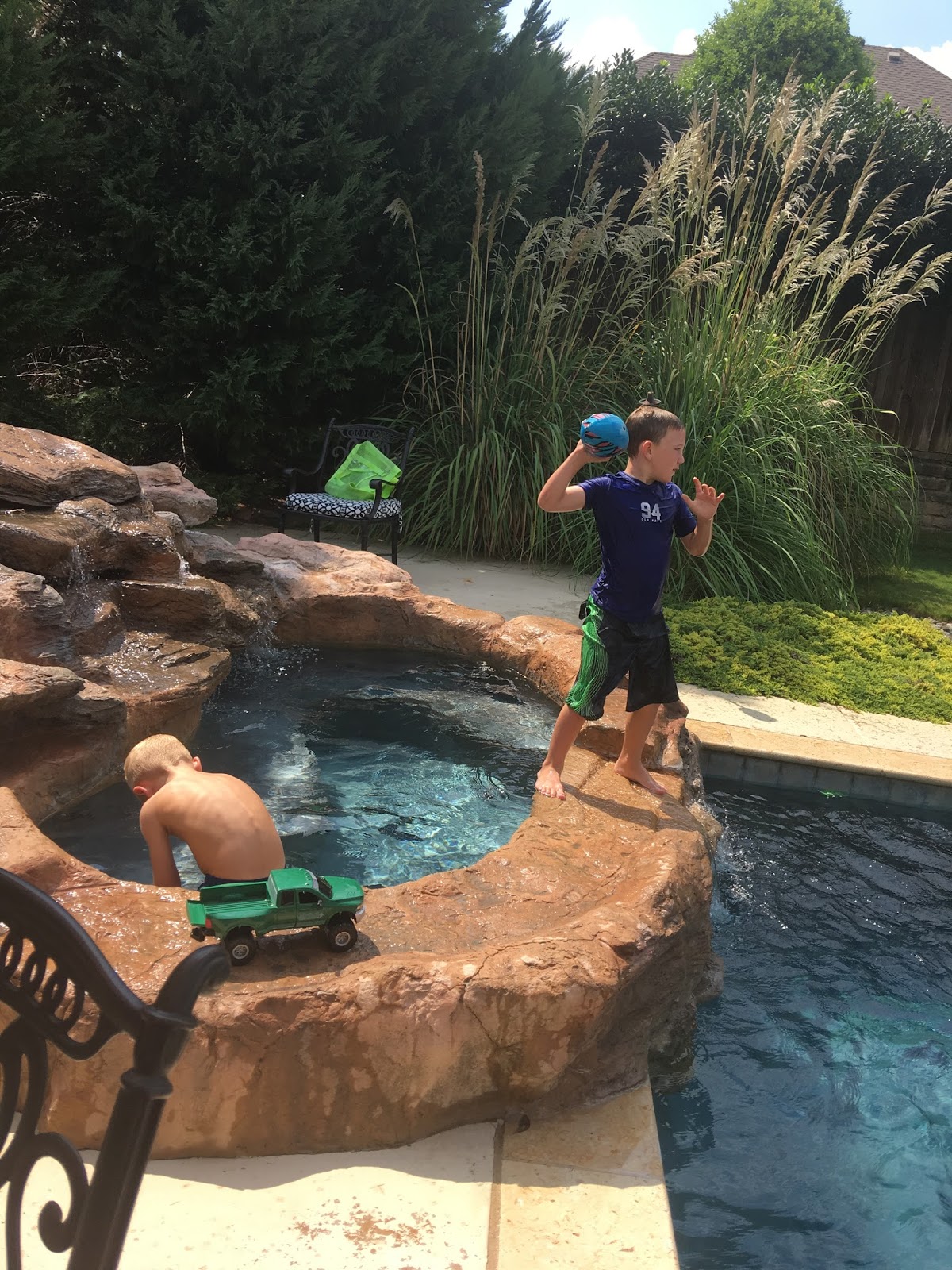 Then Sunday we made it back home. One of the families stopped by for a cookout on the way to their house. The boys swam, we had burgers, and then we were all ready for bed by 8:00 p.m. I’m not even kidding.
