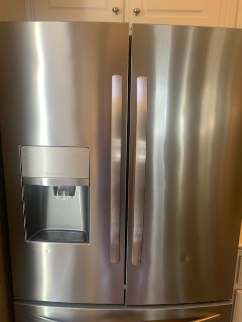 Here’s a little look at my refrigerator-complete with dings from our kitchen door and finger prints.