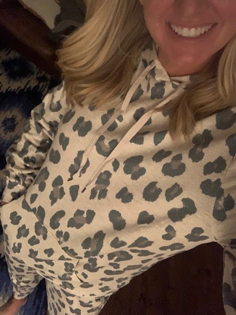 I’d be wearing a comfy lounge set like this one. Similar options can be found, but mine is sold out.