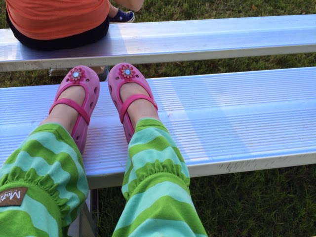 Wednesday evening we walked to a nearby park. Ebby Lee just happened to snap this picture of her nice clean FEET and shoes before the incident. Wait for it!!