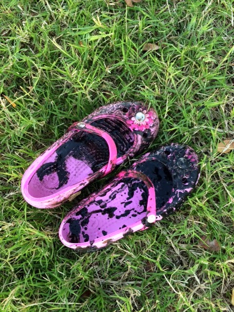 This is the FUNKY black mud Ebby Lee found!!! Yuck!! Luckily, it came off her pants and shoes…no big deal!