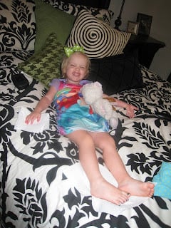 Sidenote…she doesn’t always wear bows with pajamas. We’d actually already been out & about and when we got home she wanted to put the Ariel pj dress on.