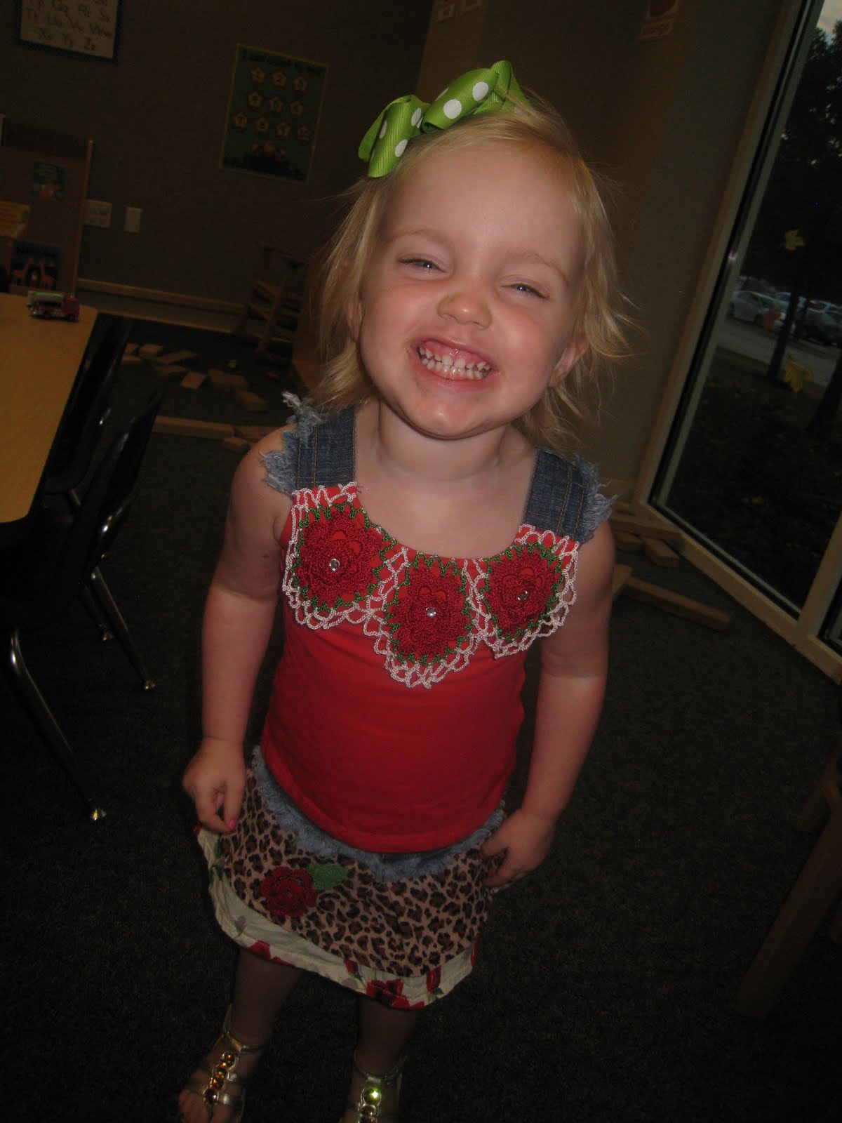 Since I’m teaching at preschool this year, Daddy was flying solo at Meet the Teacher. Let me just say, “Bless his heart”. He tried his very best. When I saw Ebby Lee, she was a bit of a mess. Her bow wasn’t matching and her cute little shirt was TOO little!! I’m telling you…bless his heart!