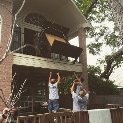 Tab and I would have never pulled off moving this bed. My cousin made these super sturdy bunk beds for Nixon’s room and we couldn’t get the bed apart to move it. (Since then the bed has been taken apart and put back together in Bowen’s room.) So the movers just hauled it off the back balcony.