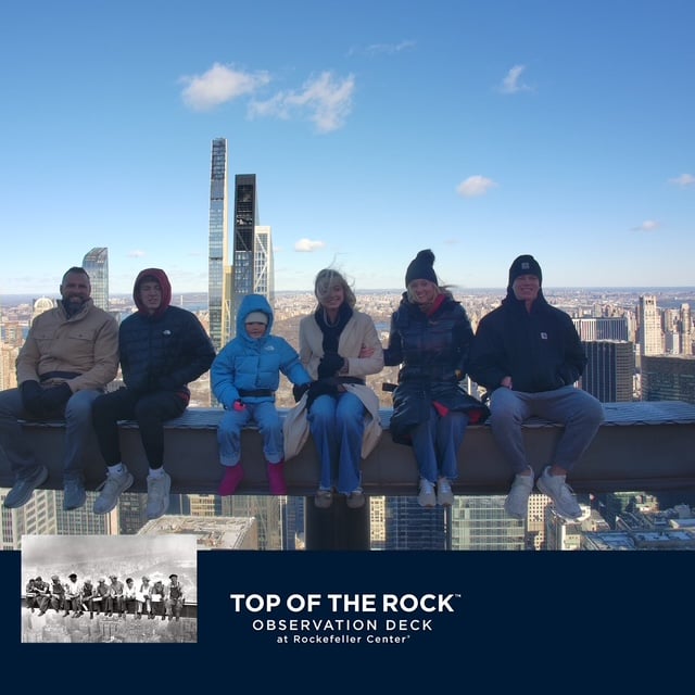 We recreated the iconic 1932 picture where workers ate their lunch on a beam. We were only about thirty feet up WITH seat belts though so WAY safer. And please note, we’re still holding onto each other.