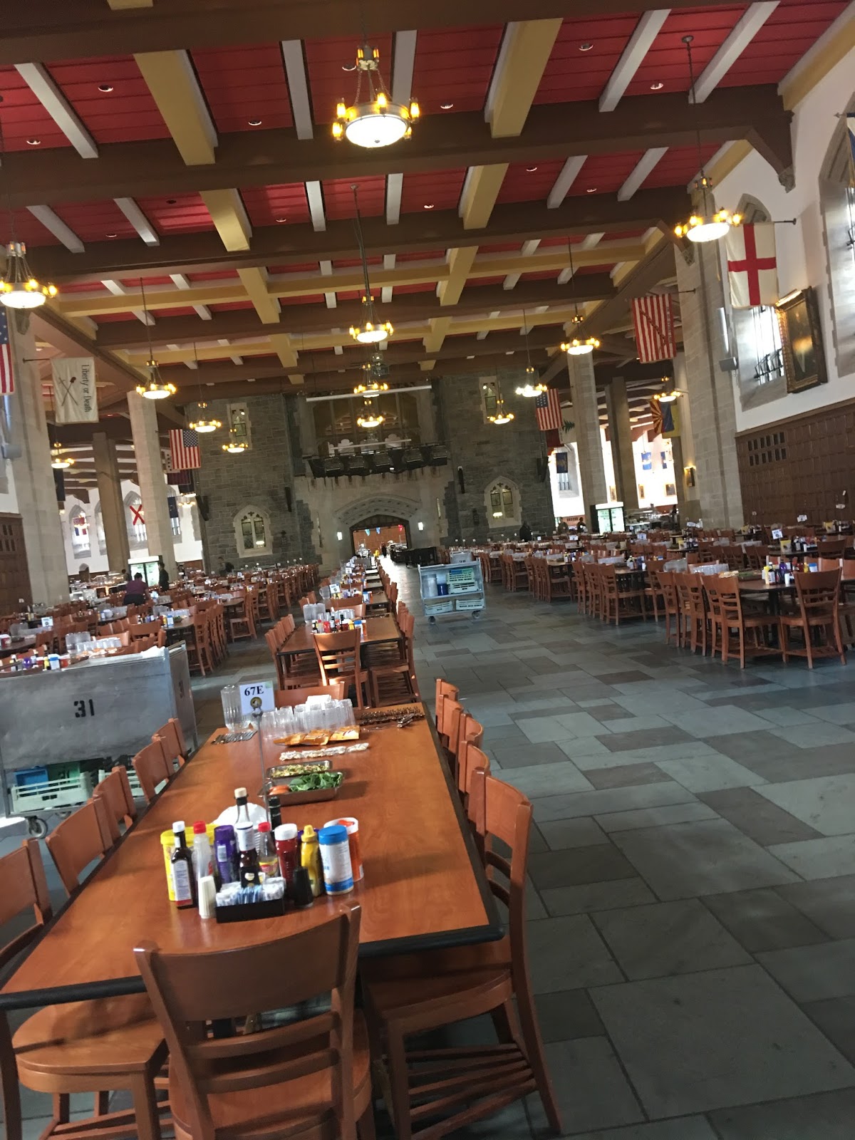 The inside of the mess hall. It reminded me a lot of the dining room on Harry Potter. They serve all meals family style and everyone is finished within 15-20 minutes. Isn’t that crazy?