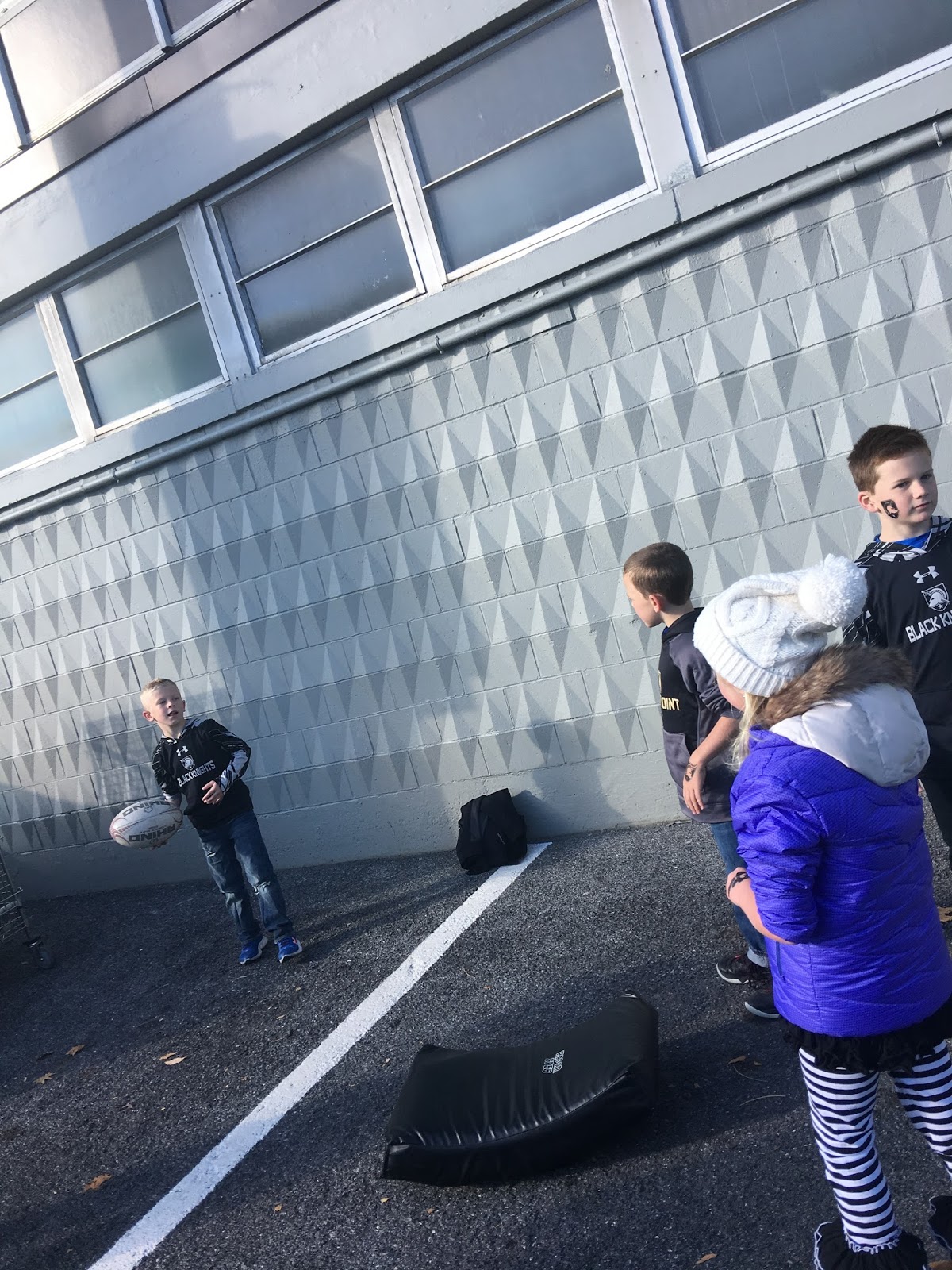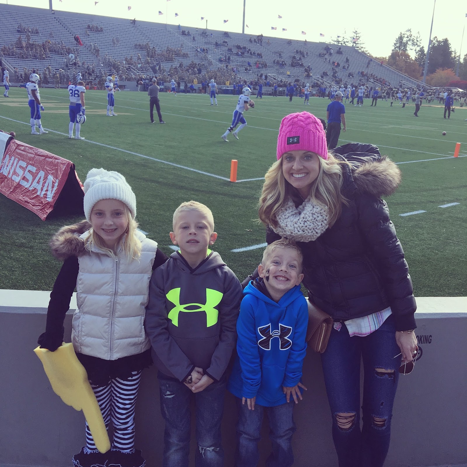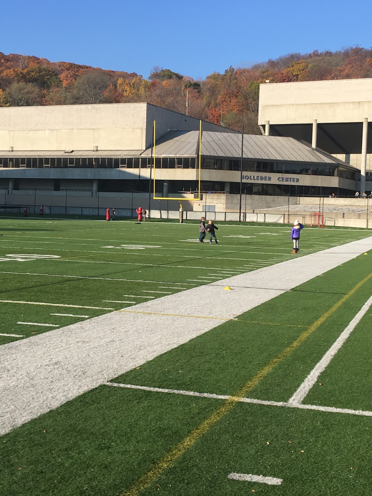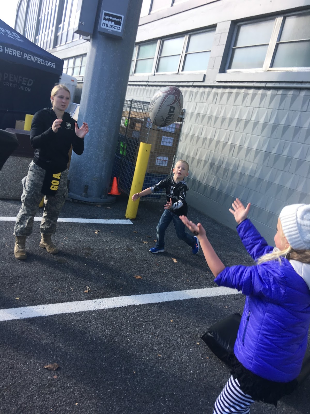 Since we were approximately THREE HOURS EARLY! EEK! We found this open practice field next to the stadium and the kids played and played. Good thing Nixon still had his football. Right? 😉