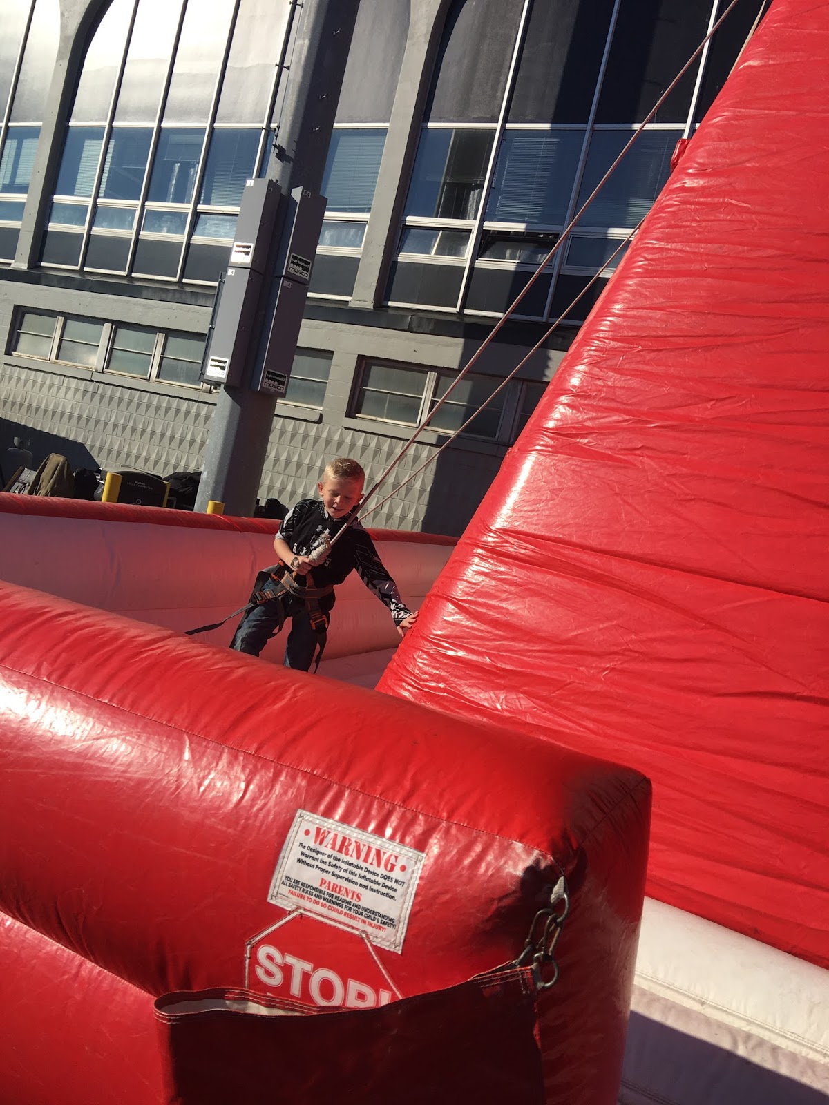 Bless her heart…this was as high as Ebby Lee got. The helper on the other side was pulling kids to the top, but the guy on her side wasn’t. She’s so my daughter.
