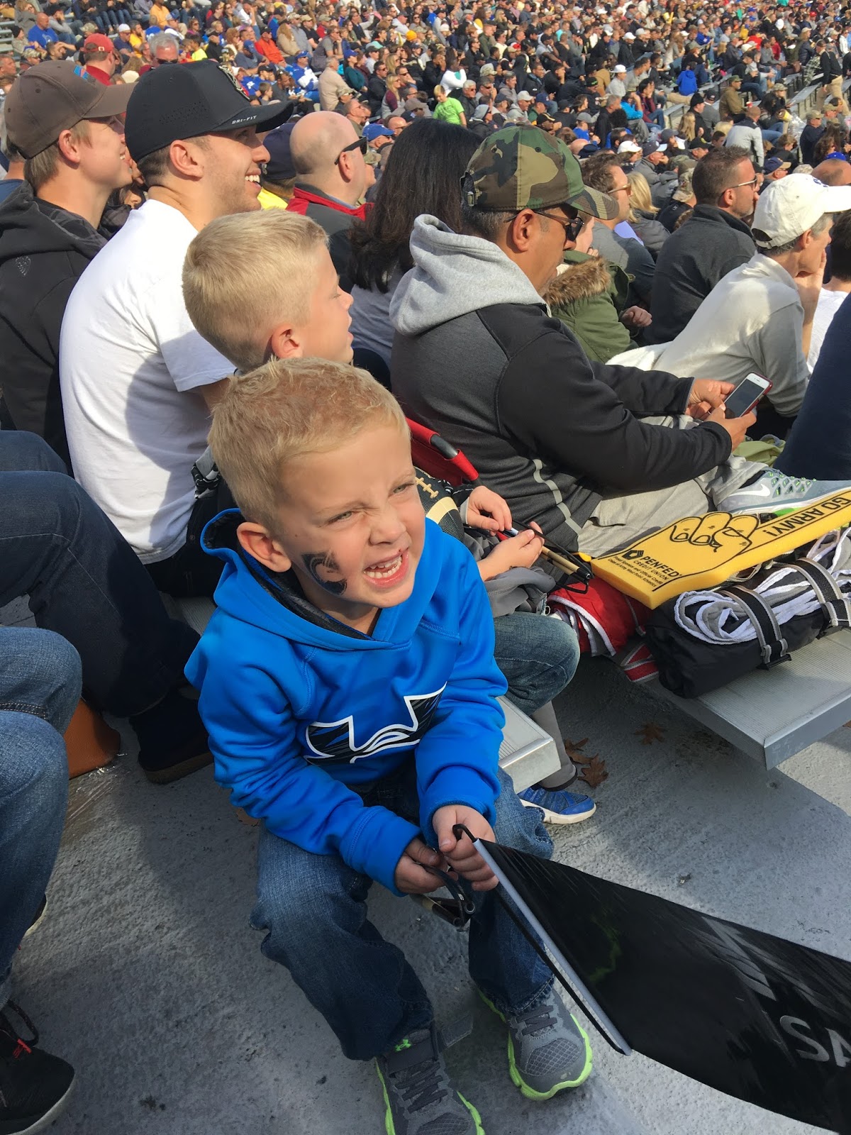 We spotted this cutie before the game started. Bowen was already in his seat begging another wife for popcorn.