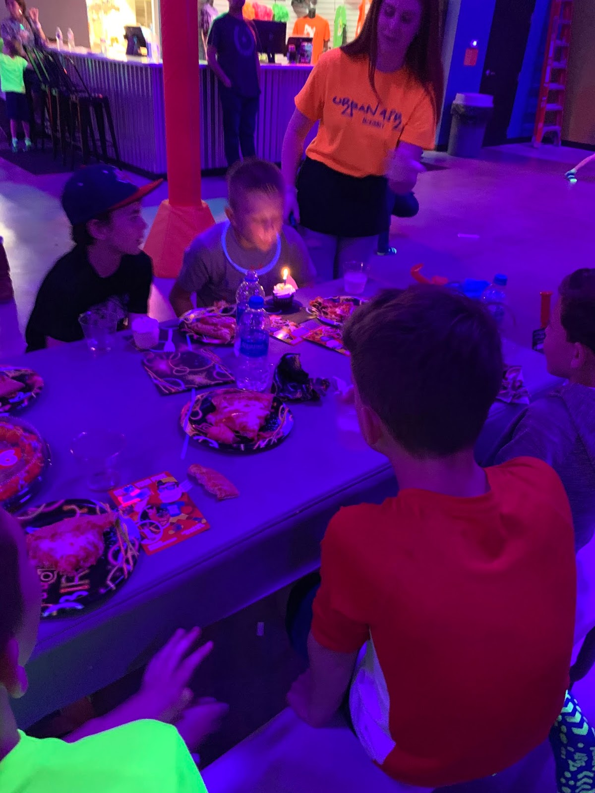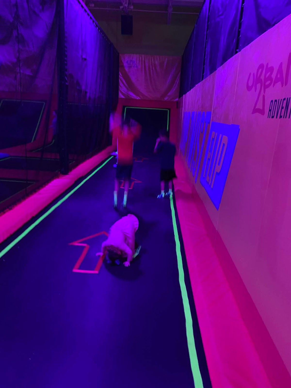 We had our own party host who took care of our table, got our food, and made sure things were running smoothly. Friday nights at Urban Air are Glo Nights…so everything was black light/glow in the dark.