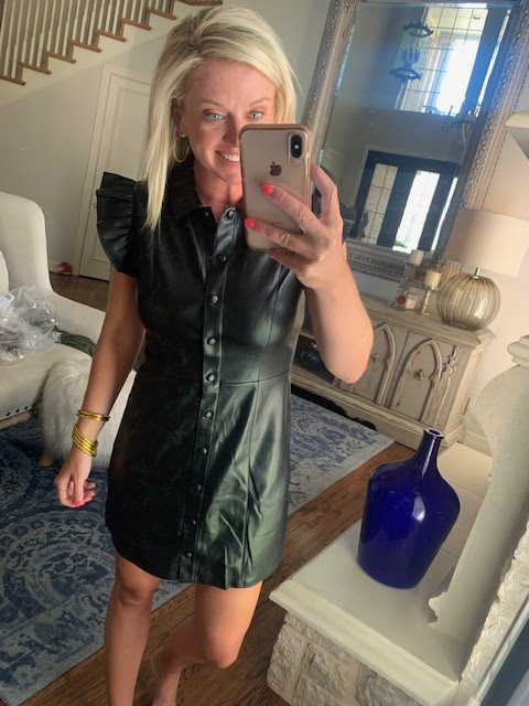 Another HIT…this faux leather dress. It comes in black and brown and is way cuter than I’d imagined. We have an upcoming fall work trip for Tab and I think this will be perfect. I sized up one.