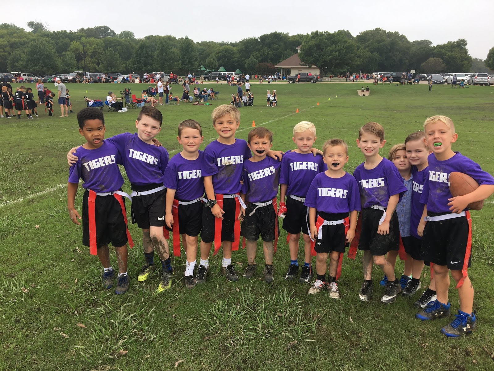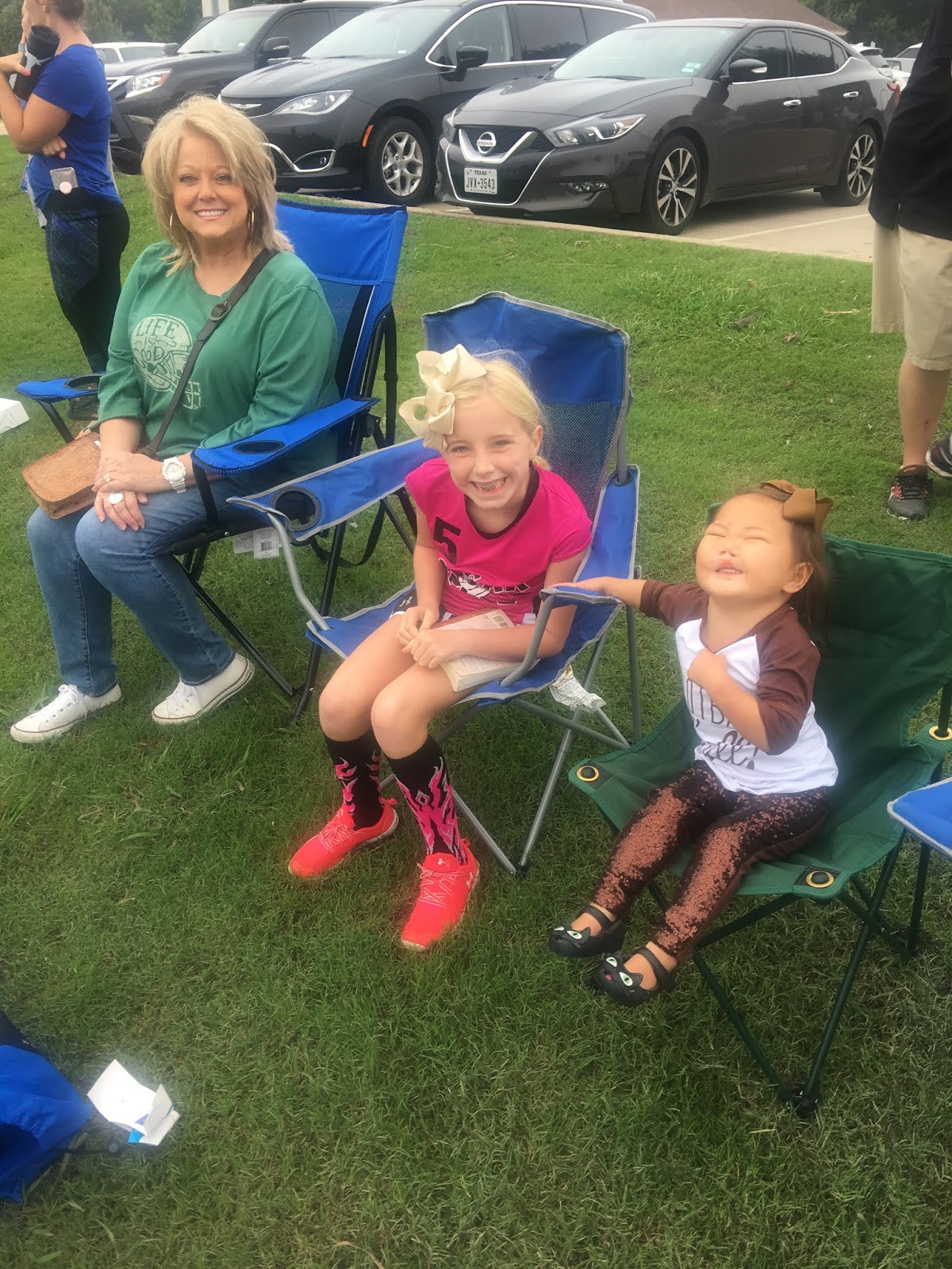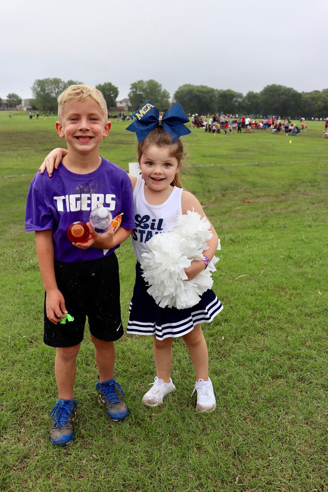 Saturday morning Bowen had a flag football game and Britt managed to make her biggest “CHEEEEESE” face to date.