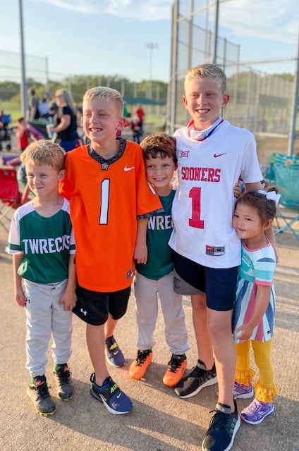 These two are our neighbors {each on opposite sides} and they happen to think my boys are the “big boys” on the street. We went to dinner at Local Yocal in downtown McKinney and then made our way over to the ballfields to cheer. These boys will go to kindergarten with Britt next year. 🙂
