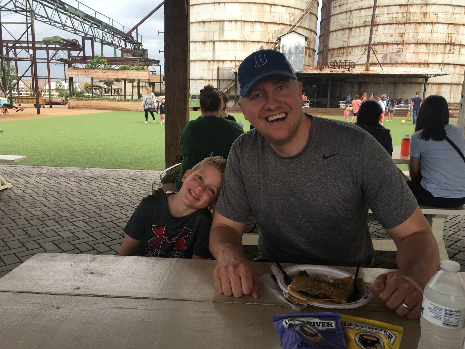 I should have taken a picture of the food trucks. So many yummy options! Crepe truck (recommended by Sheaffer and Meagan-that’s where we ate-YUMMY), Cheddar Box (Fancy grilled cheese and fancy macaroni and cheese-I got Bowen’s lunch from this place and HAD to try some mac and cheese-SO GOOD!), and to be honest…I walked by the other options but can’t remember those at the moment.