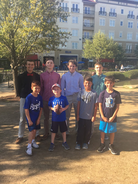 Our guests requested MEXICAN for dinner so we decided our favorite-Mi Cocina was the perfect spot. The weather was simply amazing on Saturday afternoon/evening. We headed to this park area in Watter’s Creek first. Nixon got asked to play a little football game. He was playing with four young boys when those four high schoolers showed up WITH DATES FOR A DANCE but asked if they could play for a bit before dinner. They were so sweet with the young boys. And they seriously made Nixon’s night.