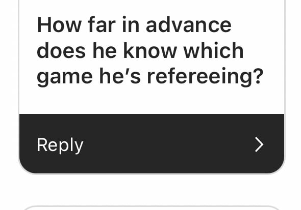 Unfortunately, by contract, I am not allowed to share how the NFL assigns our games but I can tell you that I do not know my entire schedule in advance.