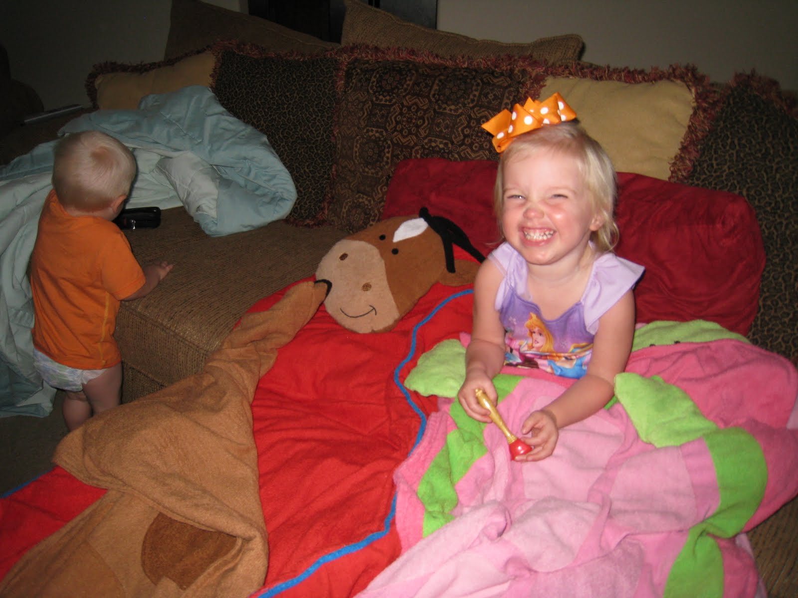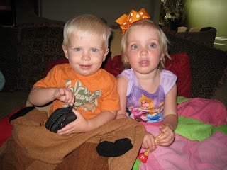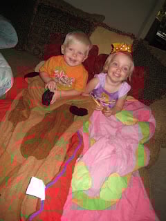 This weekend Tab worked a scrimmage and was gone a BIG part of the day on Saturday. The kiddos and I got all cozy on the couch and had a “Movie Afternoon”. Ebby Lee got so cozy…she was wearing p.j.s!