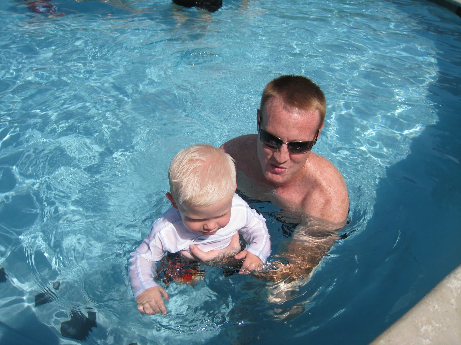 Saturday…we headed out to Hughes Springs to visit Tab’s family. His brother’s family was all here from Denver so we wanted to hang out with them for a while. As soon as we got there, we headed to the pool. Nixon LOVES the water. I was shocked that he kind of figured this ring out and made sure he didn’t fall through the middle.