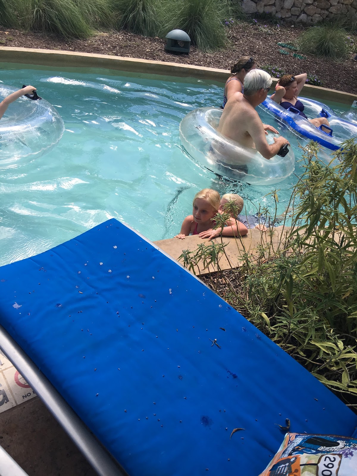 Monday morning we snagged some chairs one step away from the lazy river. These two fought the lazy river current all day hanging onto this wall.