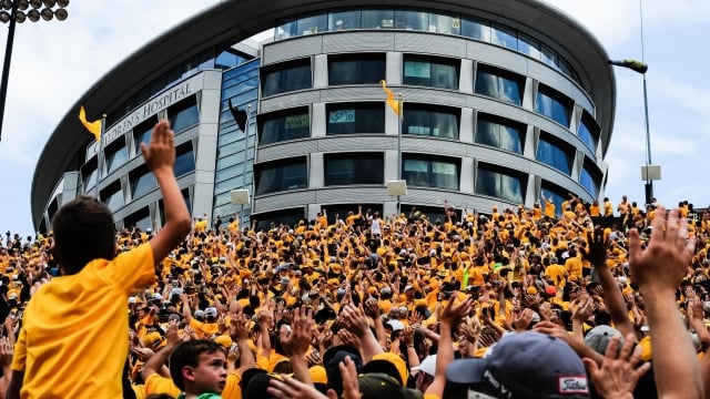 This is such a great new tradition at Iowa, I am a proud Hawkeye Alum and work at the University now as well. Our players and coaches have always supported the children's hospital (we have a kid captain at every game from the hospital as well https://uichildrens.org/kid-captain). Would you mind sharing that if anyone from afar wants to support this tradition and the Children's Hospital, they can purchase a T shirt here: https://theiowawaveshirt.org/