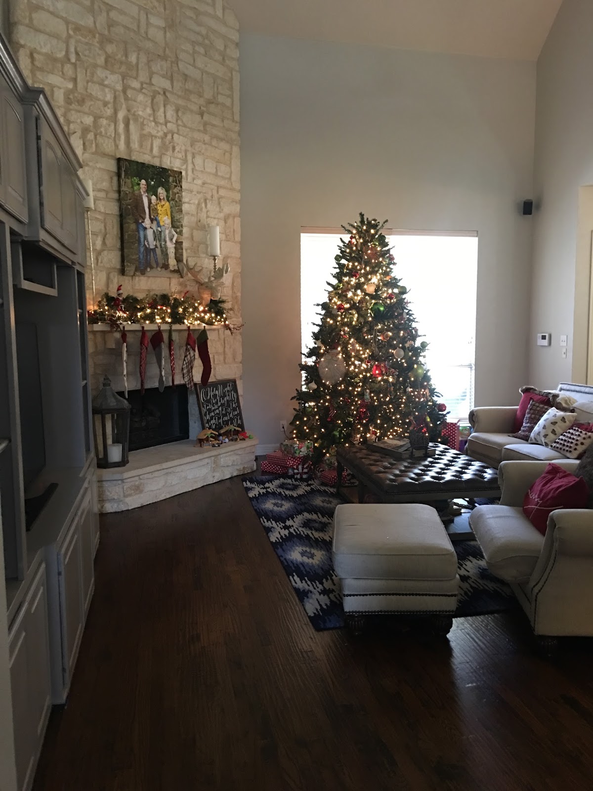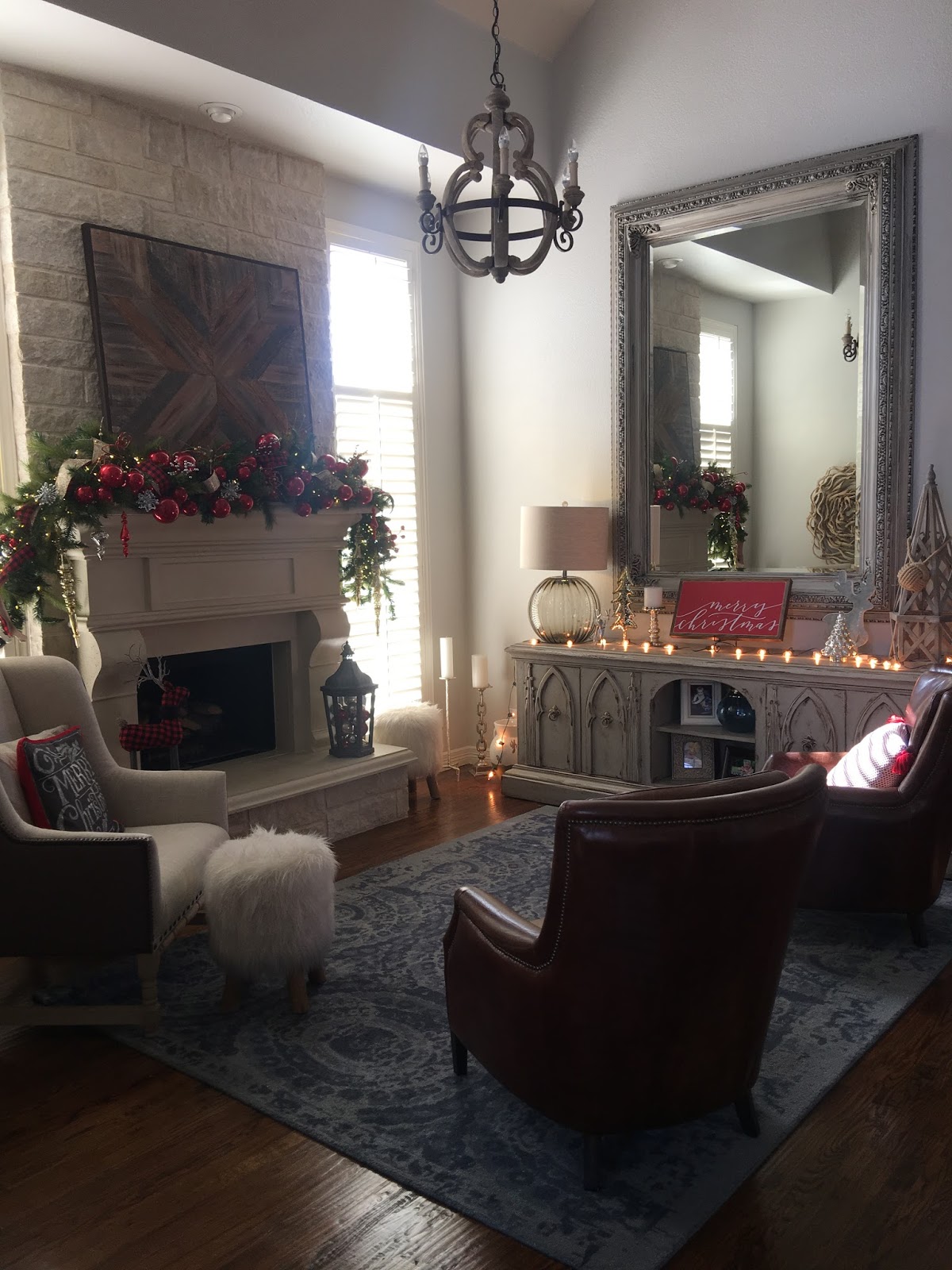 I love your Christmas decor! We are rebuilding our home after Hurricane Harvey, and we put in a similar stone fireplace. Yours is gorgeous. I'm curious where you found your leather ottoman/coffee table. I'm looking for one. The only one I've seen that I like so far is from Pottery Barn. Thanks for the info!