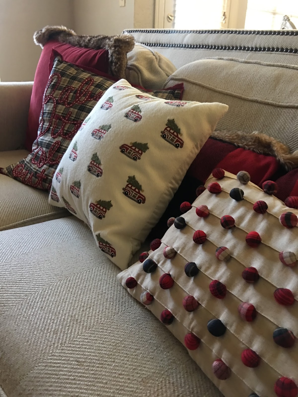 Your home is beautiful, Erika! I also love me some Christmas pillows. I also bought the one with the car and the tree all over it from PB and it's my FAVE! Wishing you and your family a very Merry Christmas.