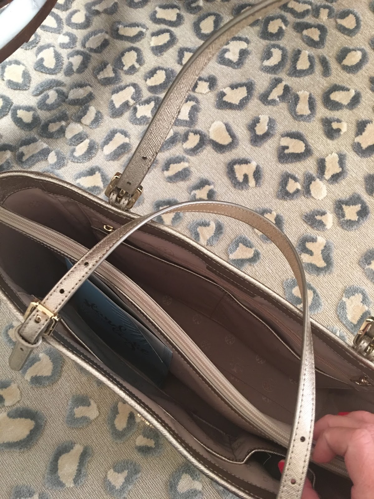 I must tell you I saw my friend, Kathryn, with this purse last summer and it really spoke to me. I loved the “summery” look with gold accents. I’m a big fan of the purse…apparently, I just don’t know what to put in there. hahaha! I have a fear of purses getting too junked up (because that usually happens to me) so in turn-sometimes my purses look like this. #keepinitrealtoday