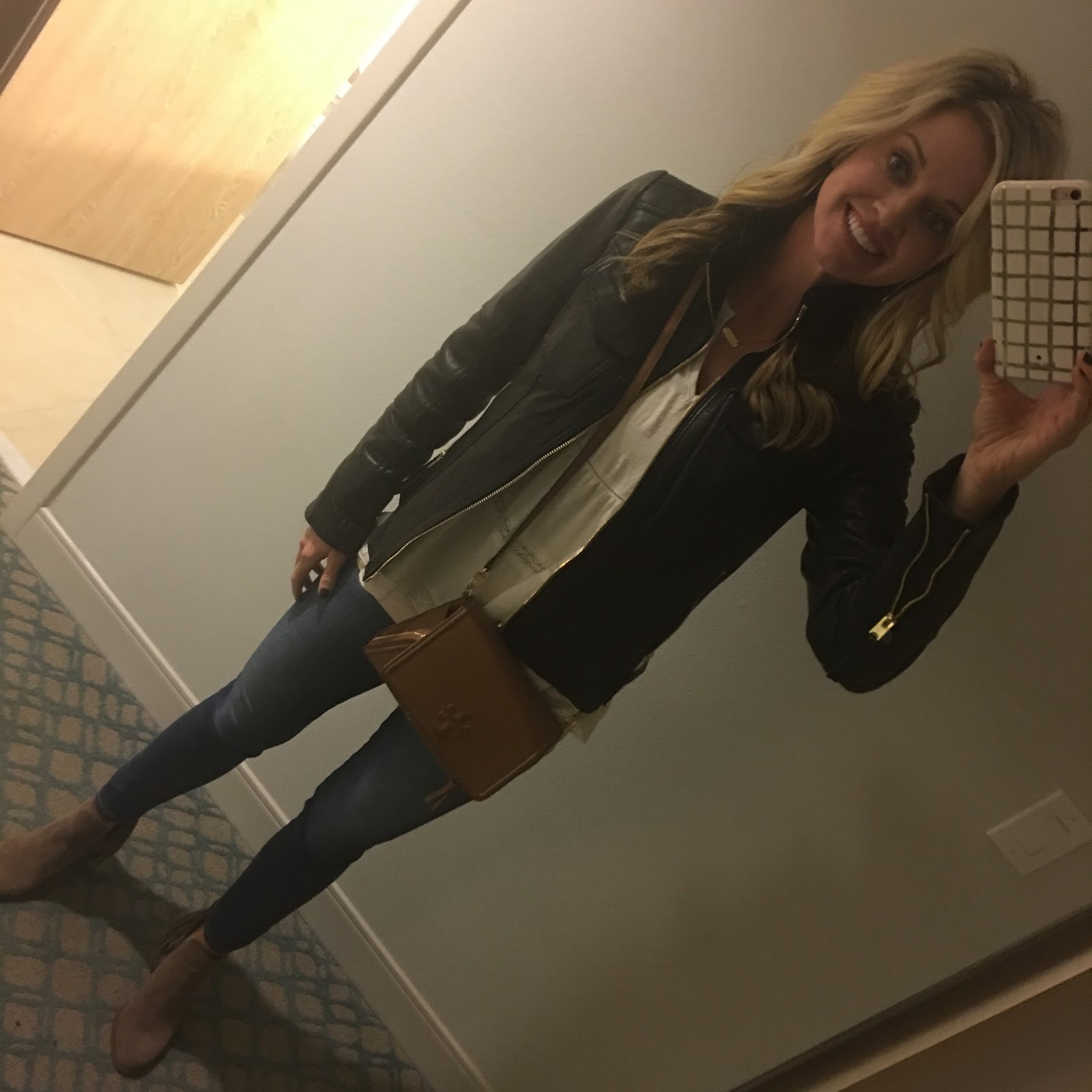 We showered and quickly got ready for the bowl dinner. I wore a pair of black jeans, leather coat (sold out), and booties. (sold out).