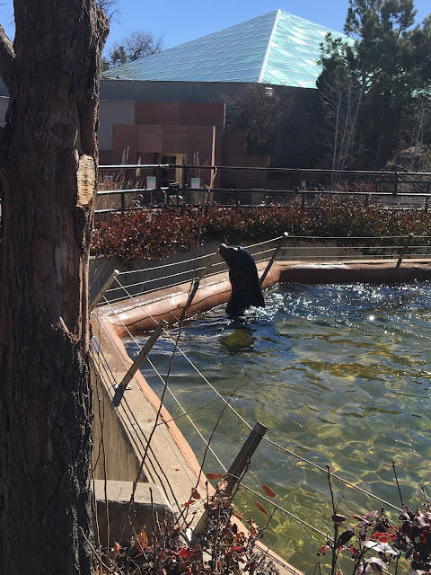 Since it was early in the season and a weekday, none of the daily shows were happening just yet. {Sidenote: I LOVE shows…zoo, fair, theme park…give me all the shows!} We walked up just as a zookeeper was feeding a sea lion some fish. She got him to do all sorts of tricks for us.
