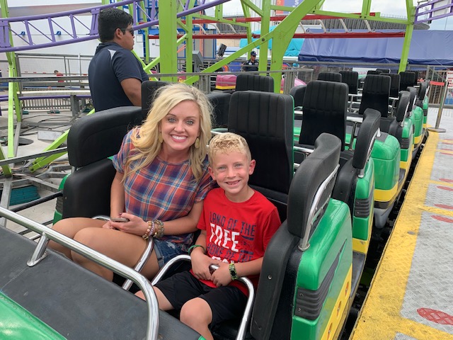I got to ride this roller coaster with Bowen because he fell in that little, “must ride with adult” spot. He loved it!