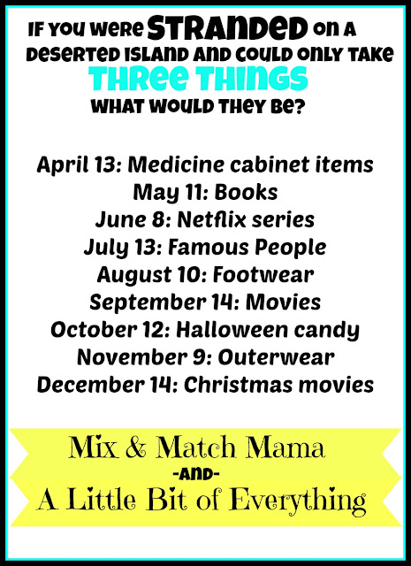 Join us next time, May 11th, and share what three books you’d want if you were STRANDED!!