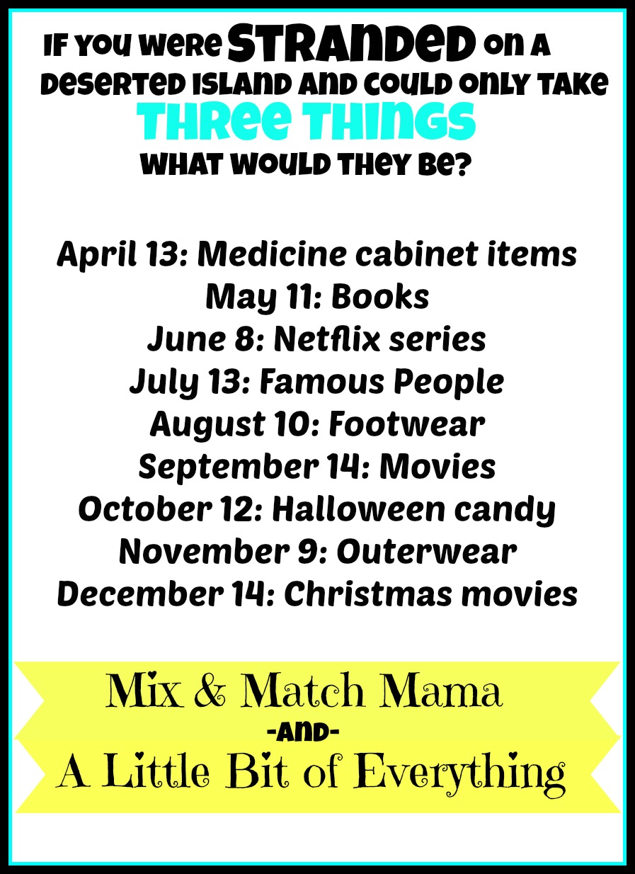 Join us next month when we share the THREE FAMOUS PEOPLE we’d take on the island with us. It’ll be fun!