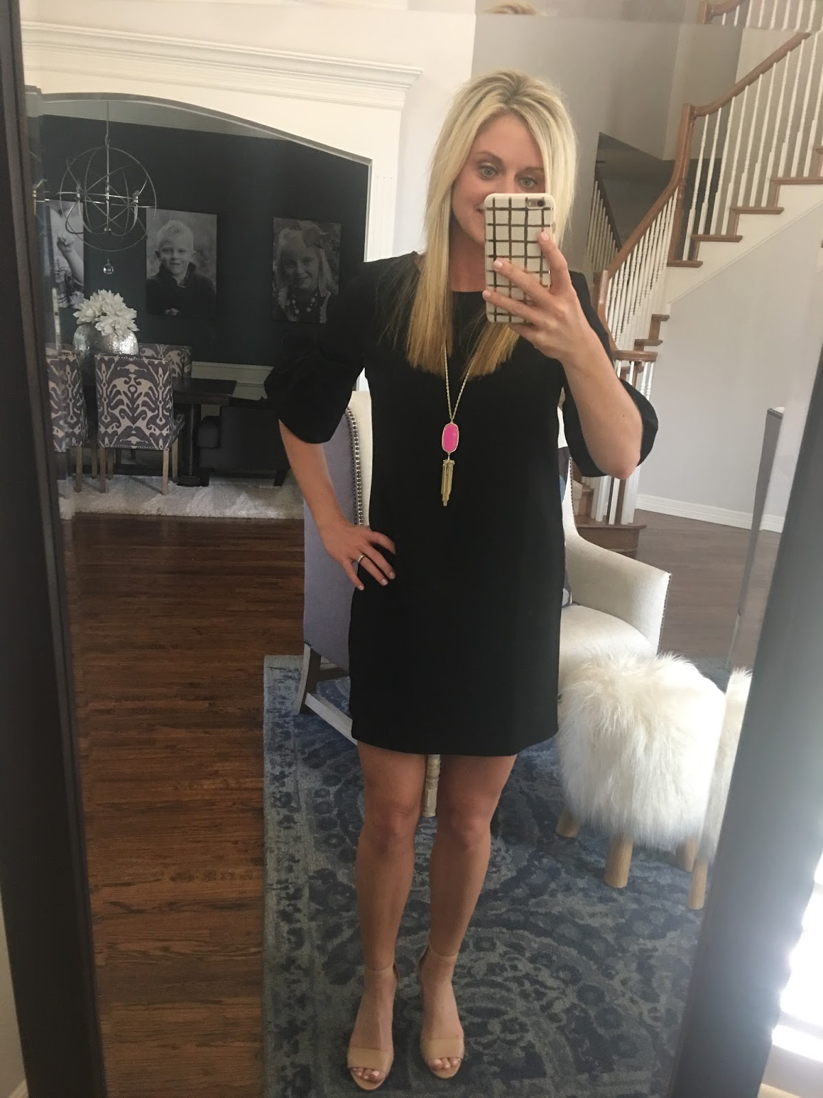 First up is this Charles Henry Bell Sleeve Dress. It is cute, comfy, and the sleeves are to die for. I paired it with a fun Kendra Scott pendant, my favorite go-to hoops, and the ankle strap sandals. The Charles Henry quickly sold out, but this Halogen dress is super similar.