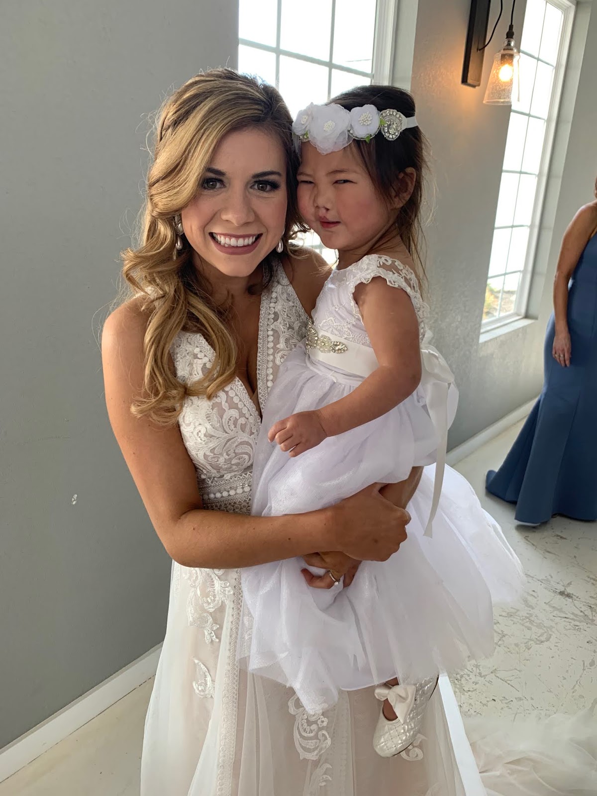 Wasn’t Mackenzie a GORGEOUS bride? And let’s talk about that flower girl….PRECIOUS! I was gonna add the link for Britt’s dress and I was 100% confident I got it from Etsy but when I go to my orders…there is NO flower girl dress purchase! I have no clue where I ordered it. I will say it was WAY too long for her so our tailor had to cut off inches, so maybe it’s for the best I can’t remember where I got it? Her shoes are from Dillard’s and the belt and head piece both were add-ons where ever I ordered the dress.