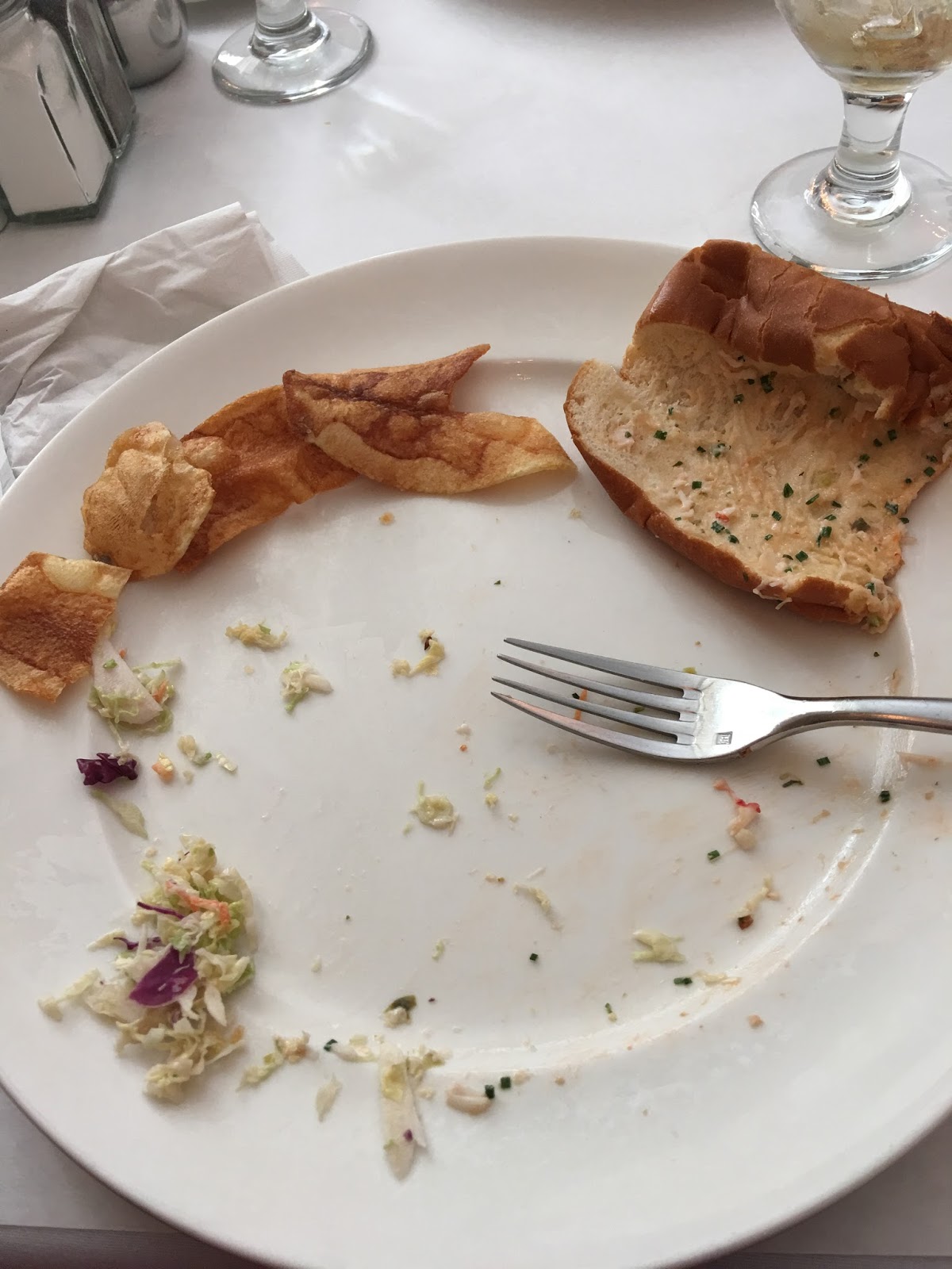 After our delicious Nobu meal, I told myself to remember to take a food picture for every other meal. Well, this is when I remembered. When I’d eaten almost everything! That’s how good our lunch was. We stopped at Sarabeth’s for a lobster roll lunch. Another meal….another success! Delicious!