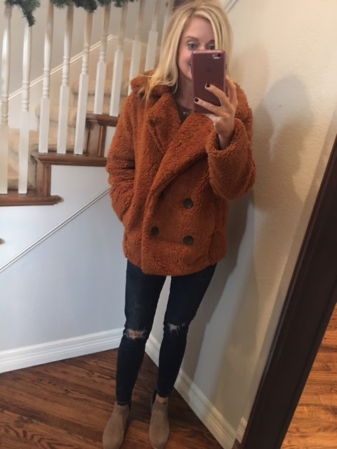 Remember this coat I mentioned getting for Britt? I told you I’d keep you posted and…it’s going back. You know how faux fur looks after you wash it? It’s kind of matted looking and just never the same? I thought that’s how this coat looked when it arrived. Not my favorite. 🙁
