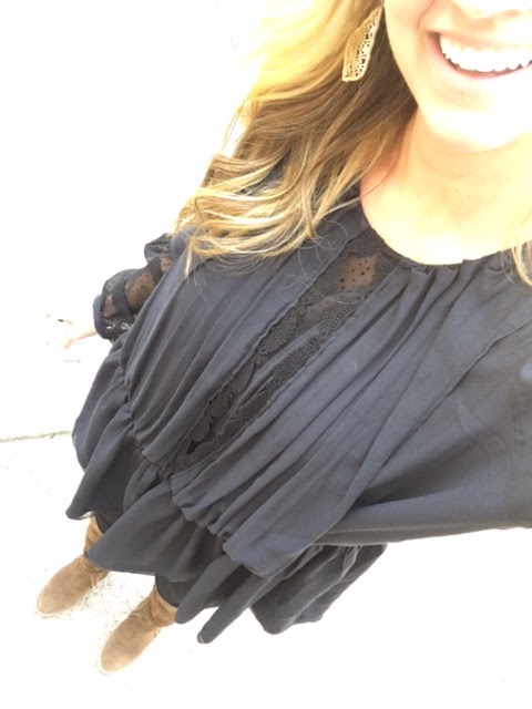 Sunday morning, I wore this black Free People top (I have a cami under mine) paired with some black jeans and then topped off with my over-the-knee-boots (sold out) to church.