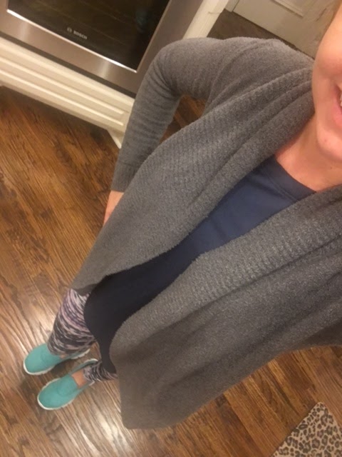 After church, I put on these comfy leggings, top (sold out), baby blardigan (thanks to Sheaffer, who’s so very bossy), and my comfy Go Walks (I think this is the newer version…mine are from last year) for getting things done around the house and a few errands (and then I might have worn the workout clothes to the gym on Monday). 😉