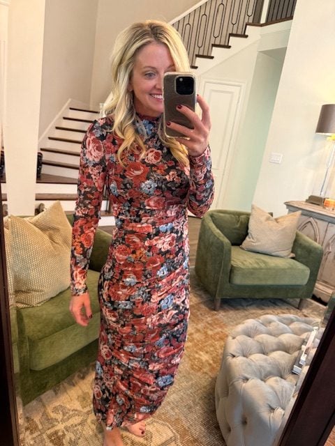*Floral Dress-Okay, ladies…if you have an event or upcoming wedding to attend, I think I might have found the dress. I ordered the medium and am going to try it in a small. It’s form fitting but wasn’t super tight and I think I’d prefer it to {hopefully} suck me in a bit more. However, my mom and Tab both thought it was so cute. I didn’t even tell Tab the PRICE! He’d have been STRONGLY encouraging me to wear this to an upcoming wedding! haha! Definitely worth a shot if you have something you need a cute fall dress for!