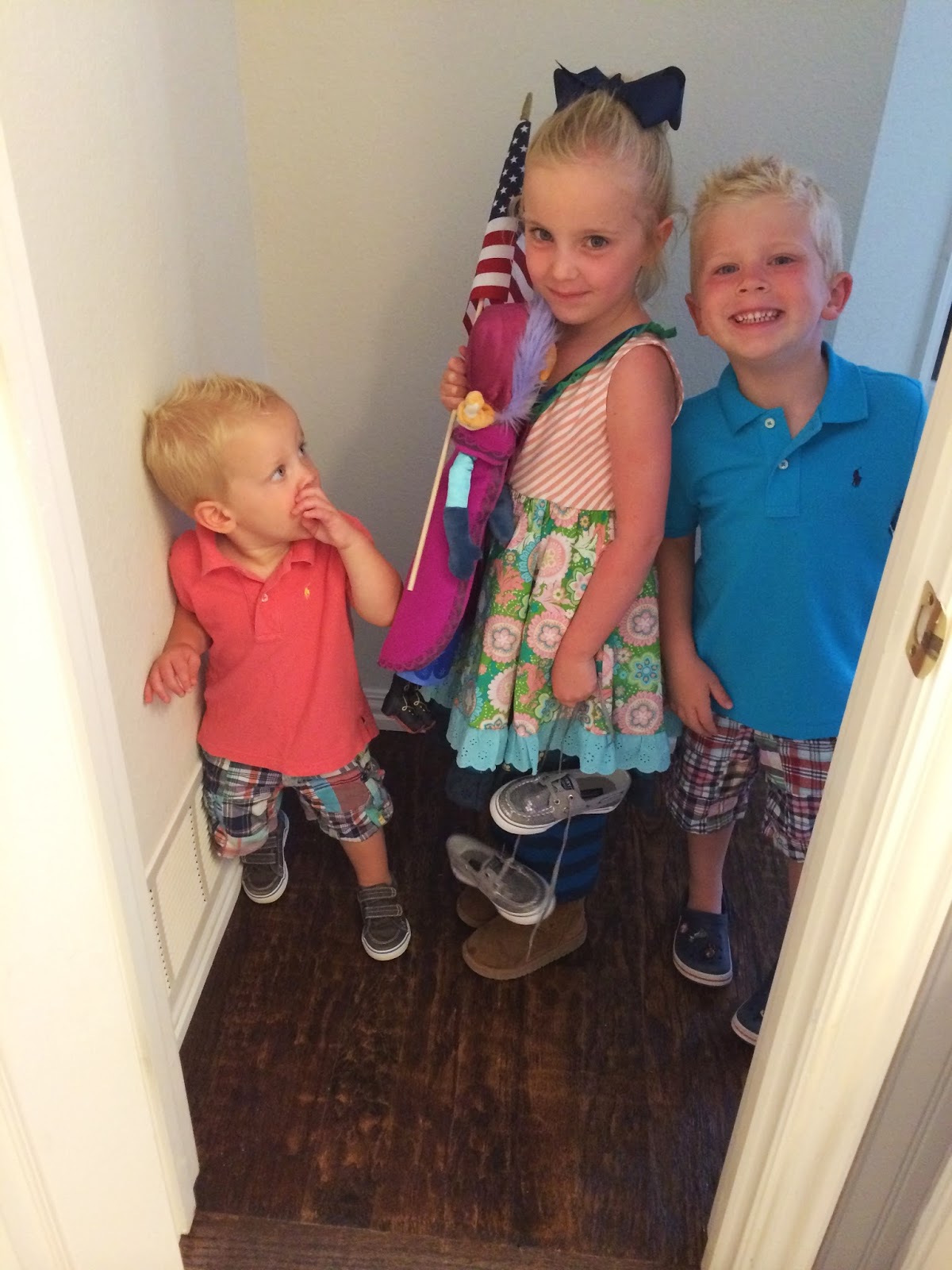 All super cute outfits! Love the kids looking in on your selfie! Hilarious!