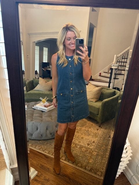 This past weekend I wore this dress {small} and these boots {true to size} to church.