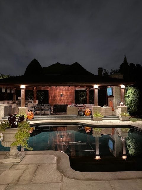Decorating pumpkins! YES! Tab does a good job of getting the back patio extra cozy so we can do it all out there. We didn’t agree on a spooky movie so football won over this year. Please note, Tab got SERIOUS about his carving.
