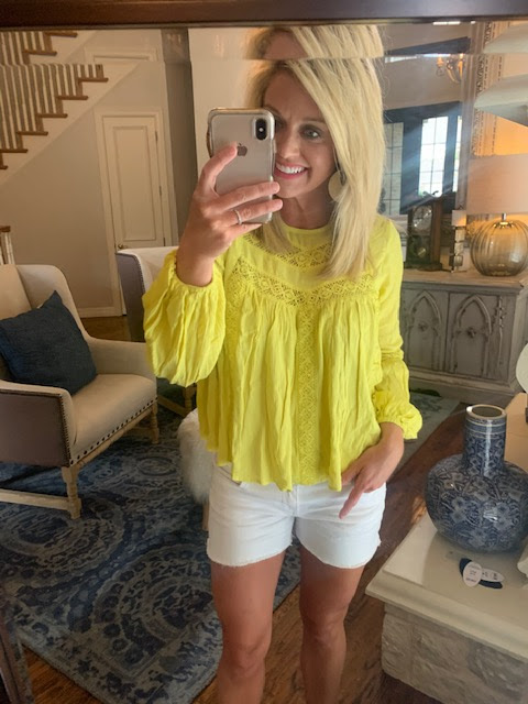 Look at this top! I LOVE the color! {also comes in a blue or white} It’s light, breezy, and a great top for summer. Also note the wedges…only $26!!