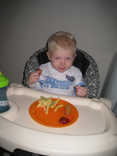 Xander and Ebby Lee eating their dinner.