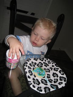 Ms. Karla brought over cookies and all kinds of stuff to decorate those cookies with. I LOVE this messy boy!